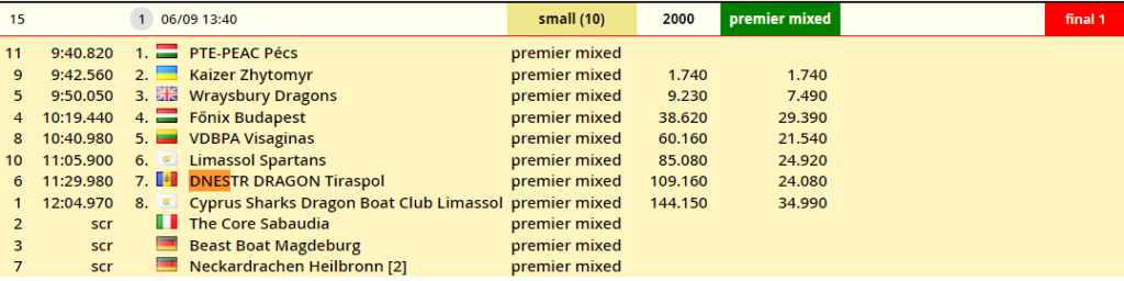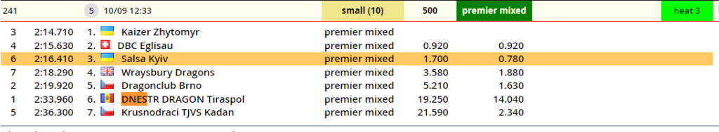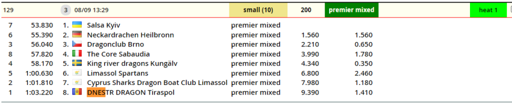 Dragon Dnestr was participated in 3 Mix Small Boat classes raced in a 200, 500 and 2000 -meter format. From 569 crews – 23 were in premier small boat format.